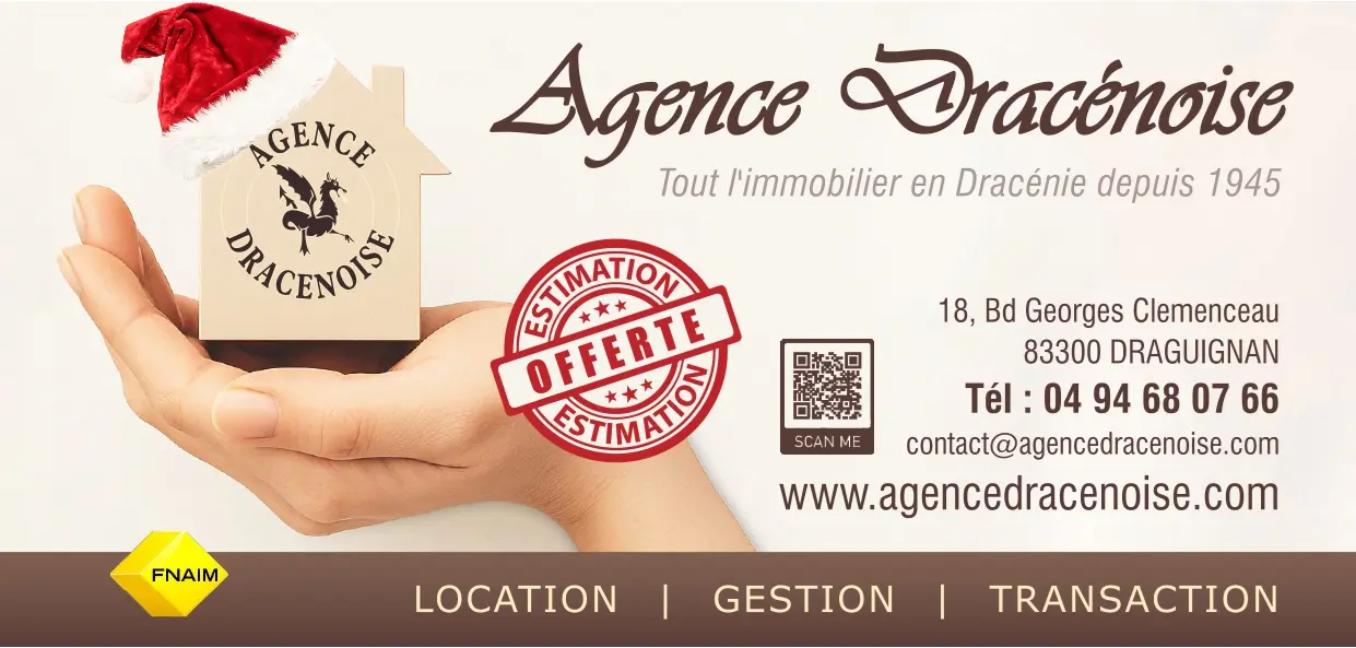 Toute l'équipe de l'Agence Dracénoise vous souhaite un joyeux Noël! N'oubliez pas de profiter des nombreuses animations proposées par la ville de DRAGUIGNAN : Fête de la glisse, apéros concerts, marchés de Noël, illuminations, il y en a pour tous les goûts. Vous pouvez retrouver le programme sur le site de...